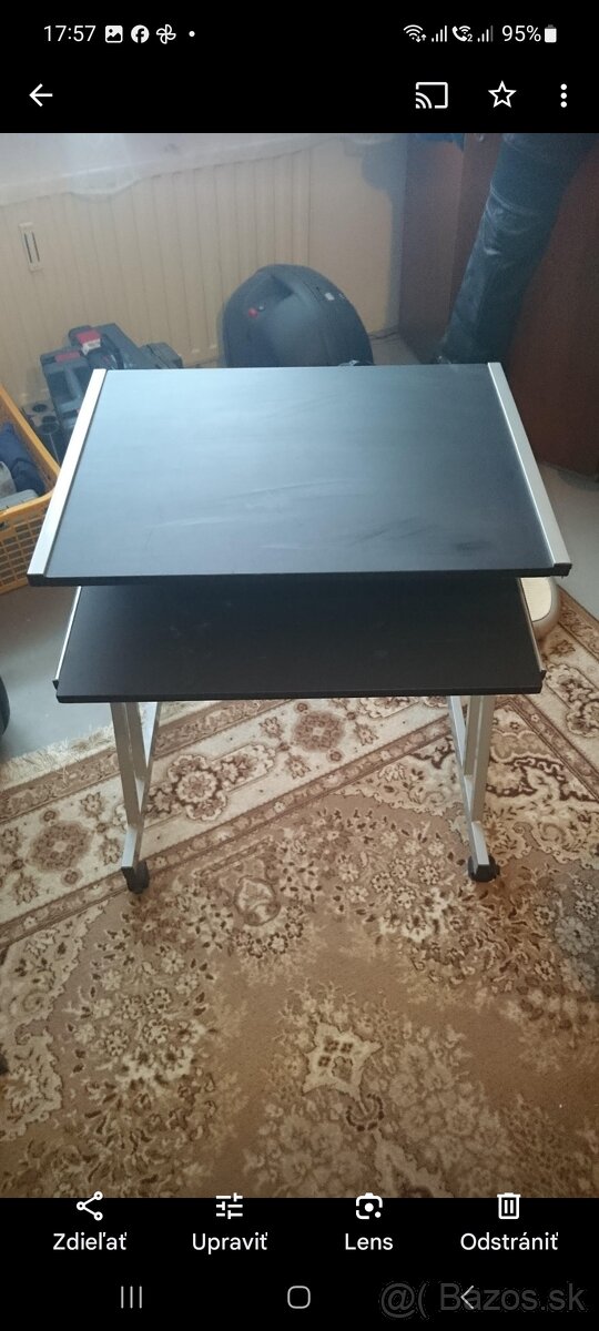 Rozoberatelny stolik - [4.12. 2025]Predam pouzivany plne funkny pocitacovy stolik s temperovanym sklom. Je rozoberatelny s vysuvnym suflikom a otocnymi kolieskami. Cena 15 EUR.