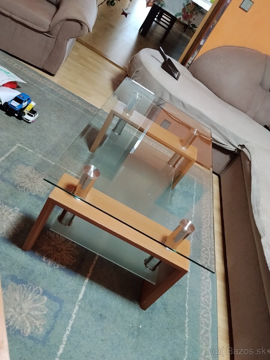 Obývačkový stolík drevo/sklo – používaný, dobrý stav