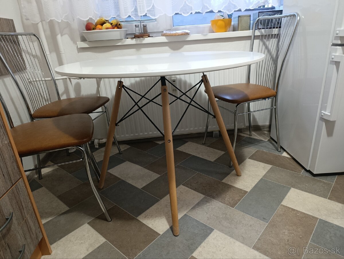 Predám tento jedálenský stôl s priemerom 100 cm. Cena je 70 eur, prípadne dohoda.