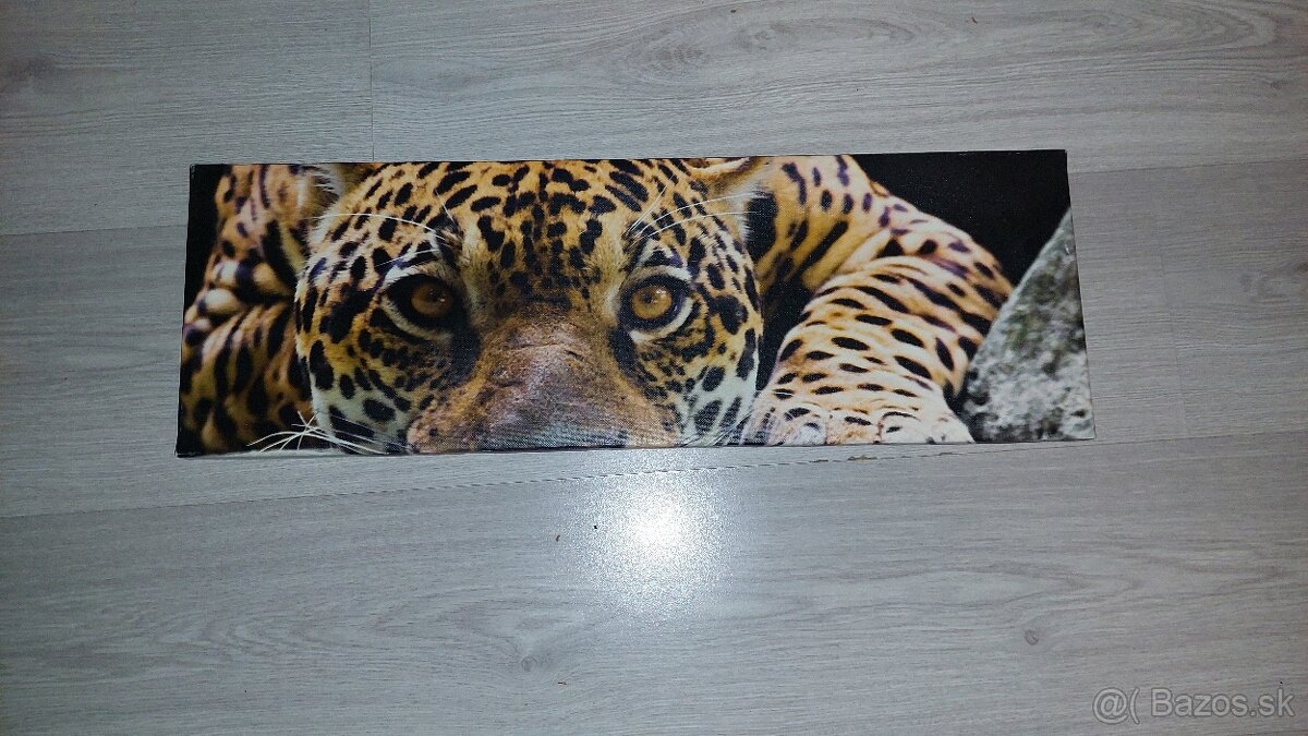 Obraz na stenu, oci leoparda. Na stene visel krátko, nepoškodený len v rohoch je akoby suchnuty. Ale nieje tam diera. Je zo stránky obraznastenu.sk pozri všetky inzeraty