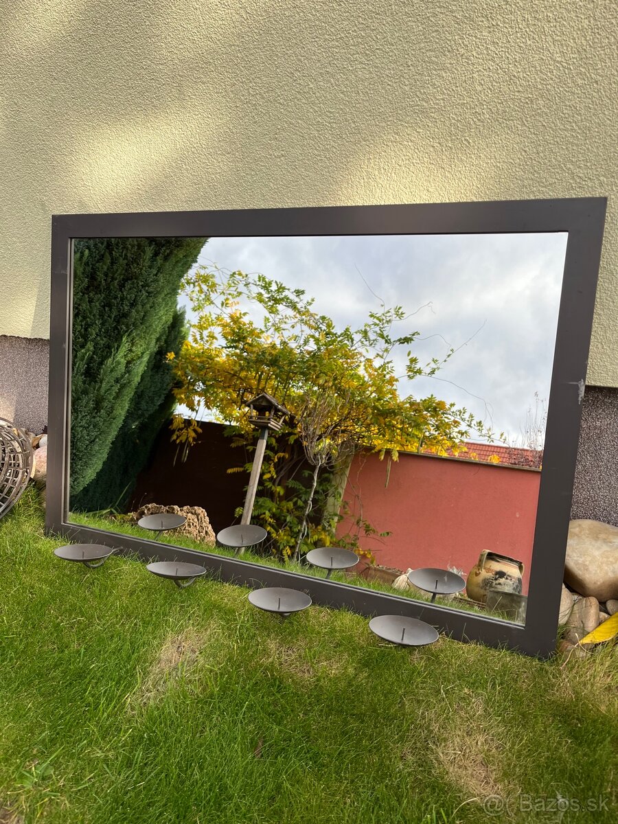Predám pekné štýlove zrkadlo (60-90cm)-hodí sa do vinárne,pivnice,alebo k industrialnemu štýlu.Zrkadlo bez vady a škrabancov.Rám na 2miestach trochu oškretý ( stačí zatrieť -hamerite- foto)Spôsob upevnenia na 2šrouby-foto.