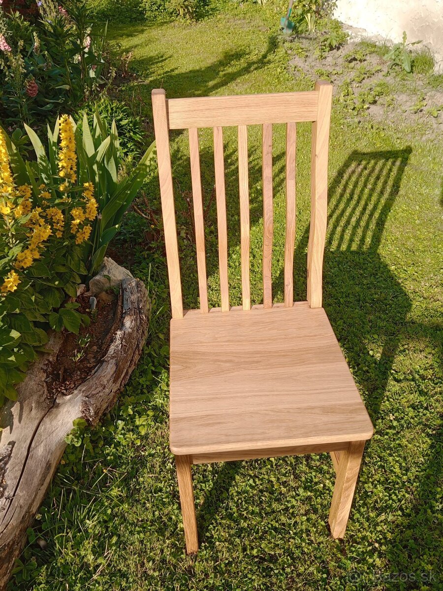 Nová dubová stolička záťažová,dub masiv,výška stoličky 100cm,výška sedu 47cm, tvarované operadlo, sedák 44x45cm.