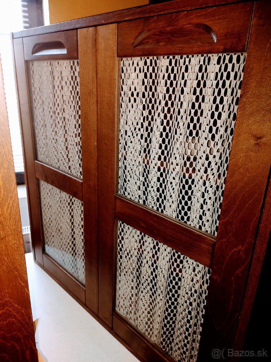 Skrinky samostatne stojace alebo doplnok. Posledné dve skrinky, výplň dvierok 1x dekor 1x sklo s poličkami. Kvalitné drevo v cene 45€/ks ak obe spolu 40€/ks. Ak si vyberiete viac veci z mojich inzerátov dovoz zabezpečím. Najradšej SMS všetko uložené v Komjaticiach 0903 686 362