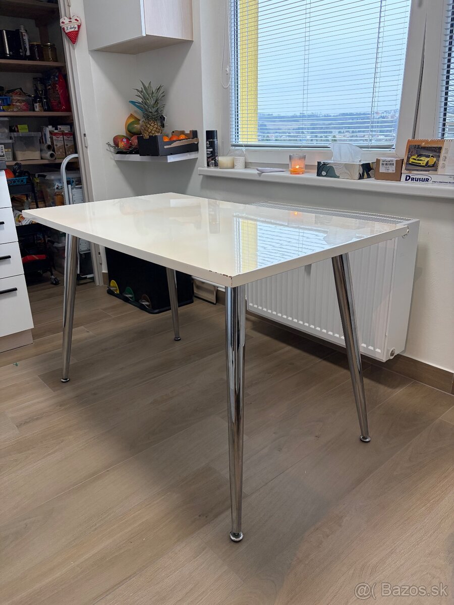 Predám používaný kuchynský stôl s rozmerom 120cm * 70cm. Miestami je trošku obytý (tak ako môžete vidieť na fotkách). No okrem toho mu nič nie je. Na zemi stojí pevne - nekolíše sa.