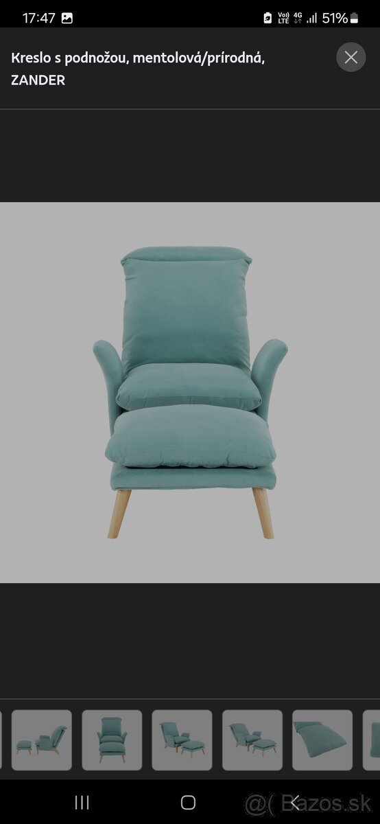 Predam pekne kreslo kupované v Kondela. Je makkučké, polohovatelné, krásna bledo tyrkysova farba. Predná noha je trosku nalomena z boku..Sikovny majster si zlepí..na funkcnosti to vobec neprekaža. Pôvodna cena 250€