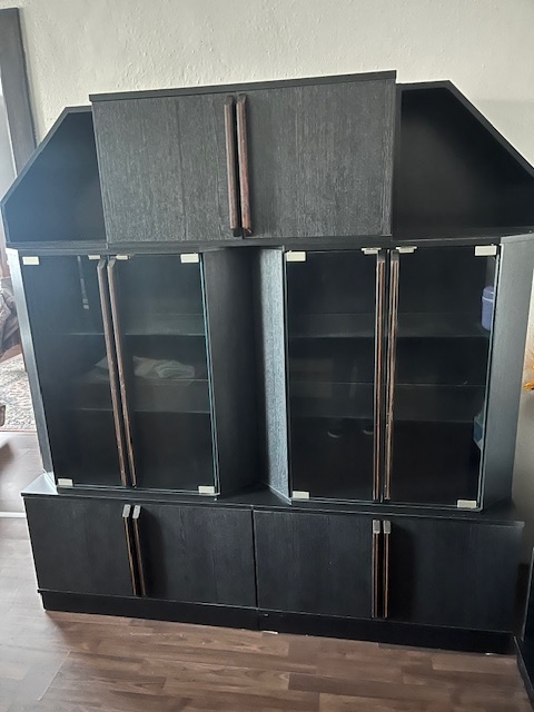 Za symbolickú sumu predám zachovalú vintage obývaciu stenu tmavej farby. Odber možný osobne v obci Polomka, Brezno.