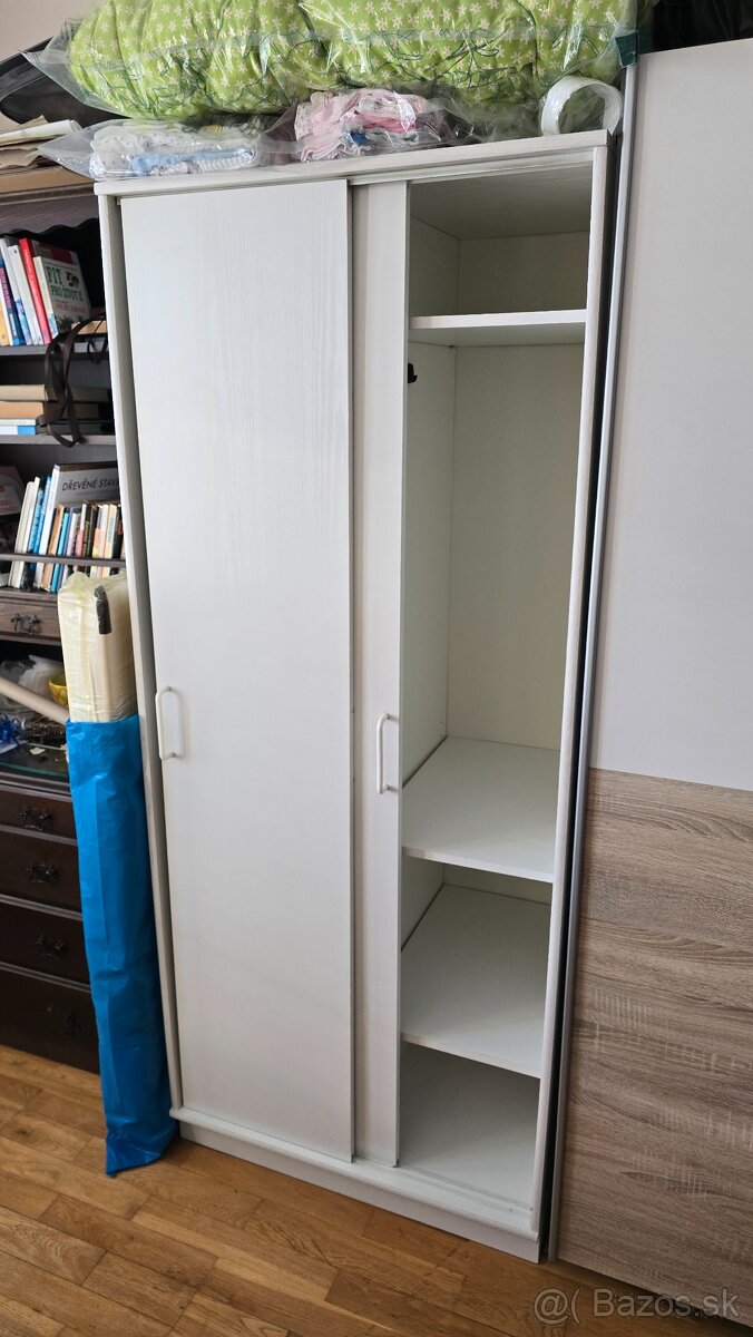 Predam mensiu starsiu satnikovu skrinu, 5ks nastavitelne policky, tyc pre vesiaky, biela farba. posuvne dvere.
