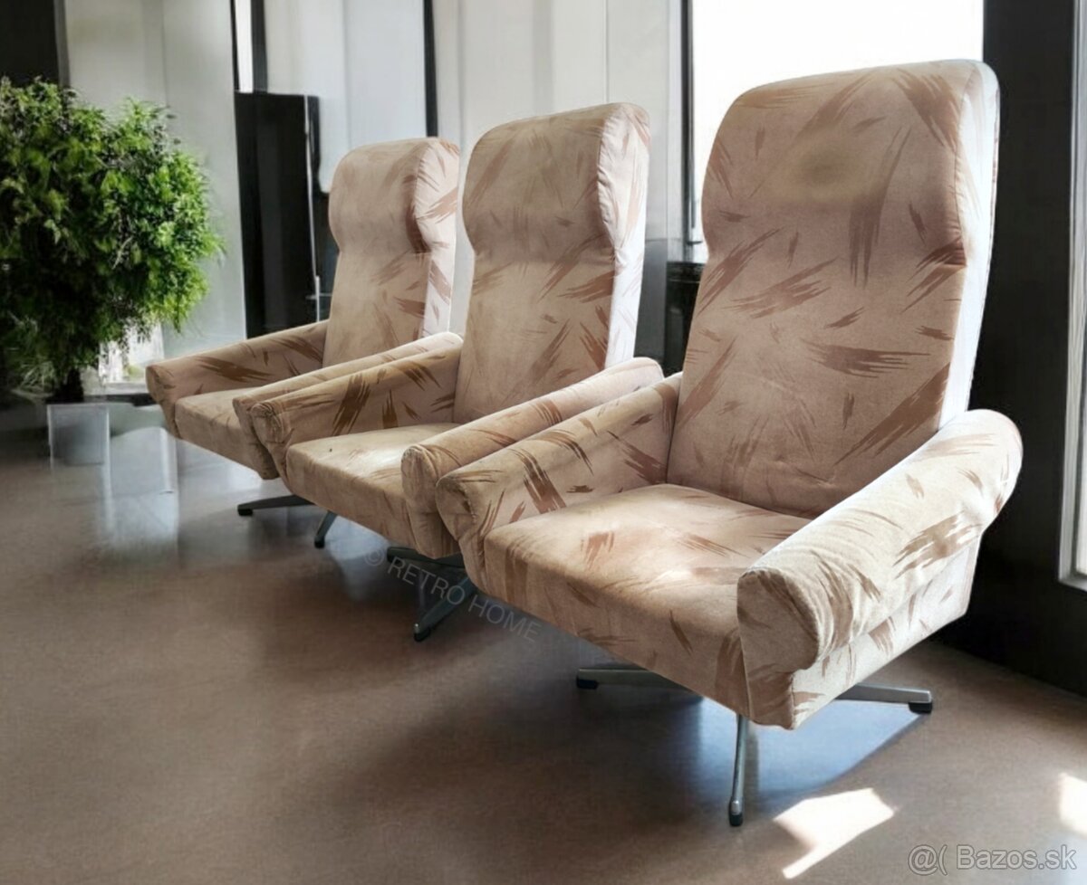Predám 3 rovnaké retro otočné kreslá na kovových podnožiach, určené na renováciu, výrobca UP Závody, cena 50€ za kus. Možné kúpiť aj jednotlivo.