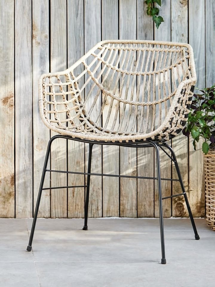 Ponúkam na predaj záhradné kreslo z umelého ratanu a čiernymi nohami z práškovo lakovanej ocele. Šírka: 60 cm, Výška: 79 cm, Hĺbka: 62 cm, dostupné je 5ks, cena za jeden ks je 40eur, kupované v JYSK, opierky su mierne ošuchané, povodna cena jedného ks bola 139 eur, osobný odber Bratislava