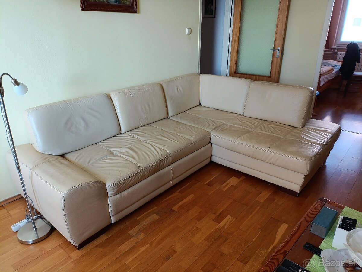 Darujem staršiu rohovú koženú sedačku za odvoz. Farba béžová. Rozmery 260 x 185 cm, rozťahovacie lôžko s úložným priestorom, mierne opotrebovaná, jedno epedo bolo prečalúnené, viď. foto. Odvoz možný po 15. Februári.