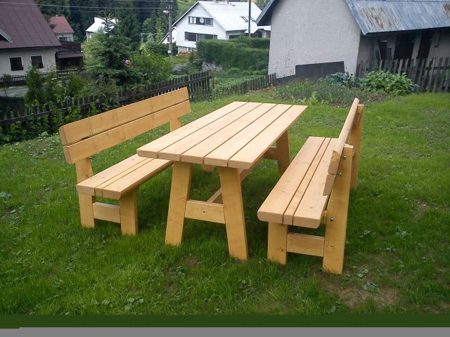zahradne sedenie z masivu - [20.12. 2025]ponukam na predaj sedenie z masivu, material smrek, napr.2m sedenie -stol a 2x lavica stoji 380€/bez nateru, moznost stolicky-50€, moznost vyroby inych dlzok, nater po dohode