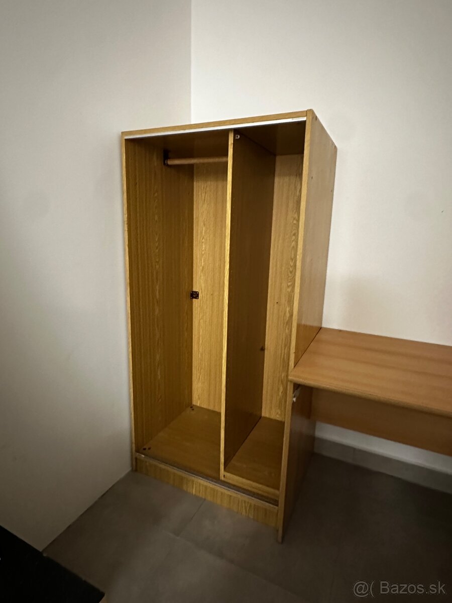 Posuniem skriňu s 3 nastaviteľnými poličkami - pevná, relatívne ťažká, závesná rolka na vešiaky.