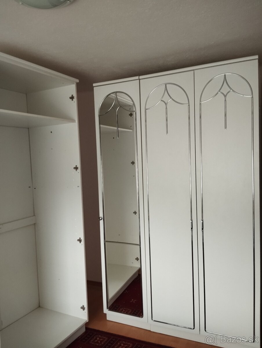 Predám zachovalý nábytok - skrine do spálne. Biele so strieborným vzorom.2 skrine 2 - dverové a jedna 1 - dverova.