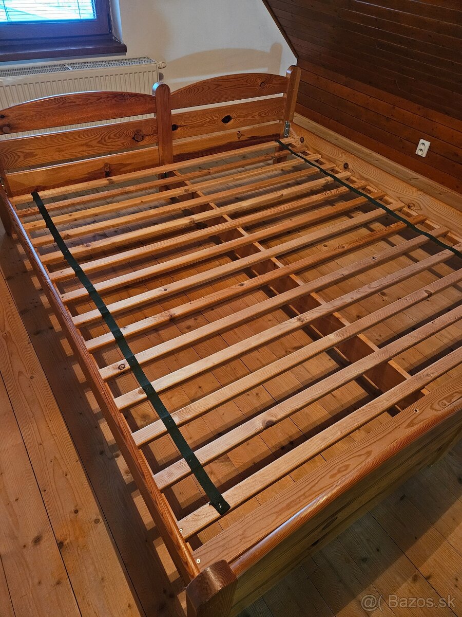 Predám manželskú posteľ z dreva s roštom aj dvomi matracmi. Výška matraca je 14 cm. K posteli ponúkam aj dva páperové vankúše 60x80 kus 20€.