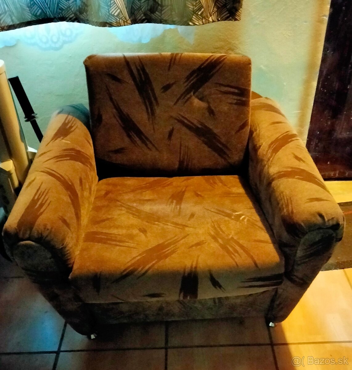 v skvelom stave. Pohovka pre 3 osoby a dve kreslá. Pohovka- dlhá 185cm,šíroká 85 cm, výška 90cm. Kreslo -šírka 100cm.