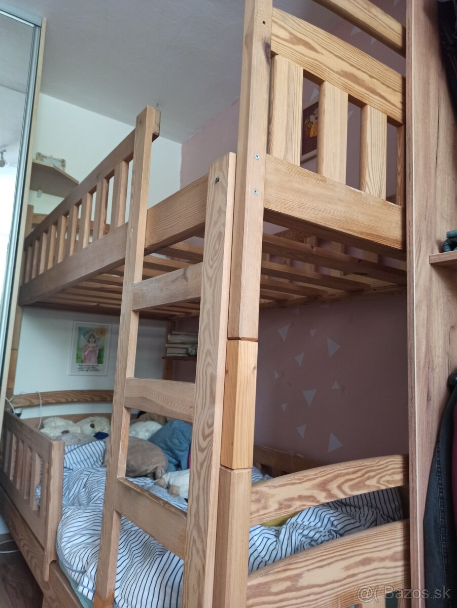 Predám hnedú drevenú posteľ vo veľmi dobrom stave aj s matracom. Rozmer matraca 90x200cm. Je to vrchná posteľ z poschodovej postele.