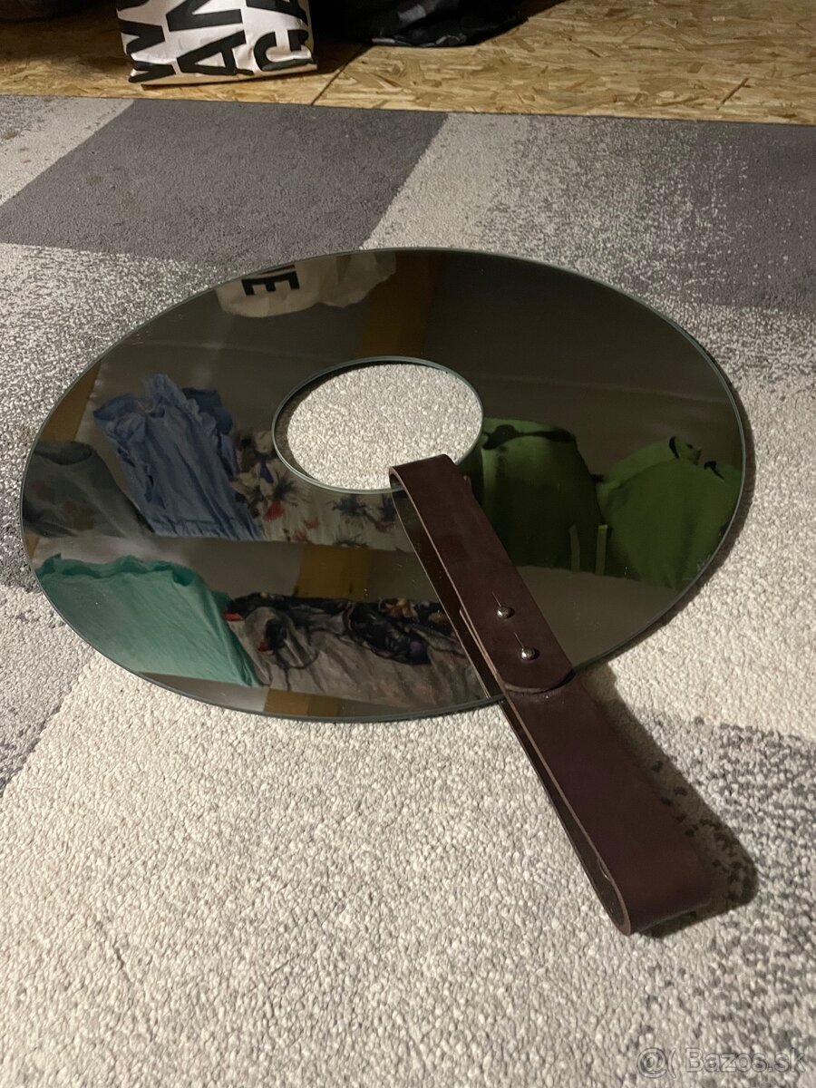 štýlové okruhle zrkadlo na stenu priemer 50 cm kožený úchyt