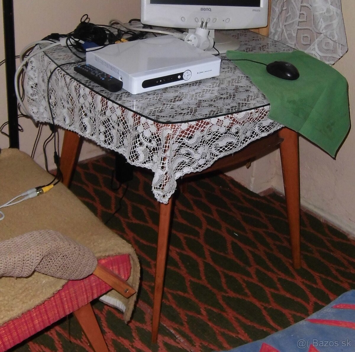 Predám zachovalý retro konferenčný stolík zo 60-tych rokov minulého storočia s krycím sklom navrchu a poličkou pod hornou doskou.