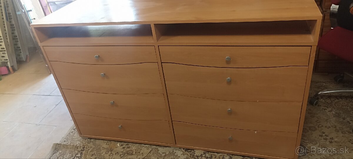 Predám 2komody – svetlé drevo - [29.12. 2025]Predám používanú komodu v dekore svetlého dreva. Má 4 zásuvky, je funkčná, ale viackrát opravovaná, preto je vhodná skôr pre menej náročného alebo na chalupu, do dielne či prenájmu. Možno sa niekomu ešte zíde.