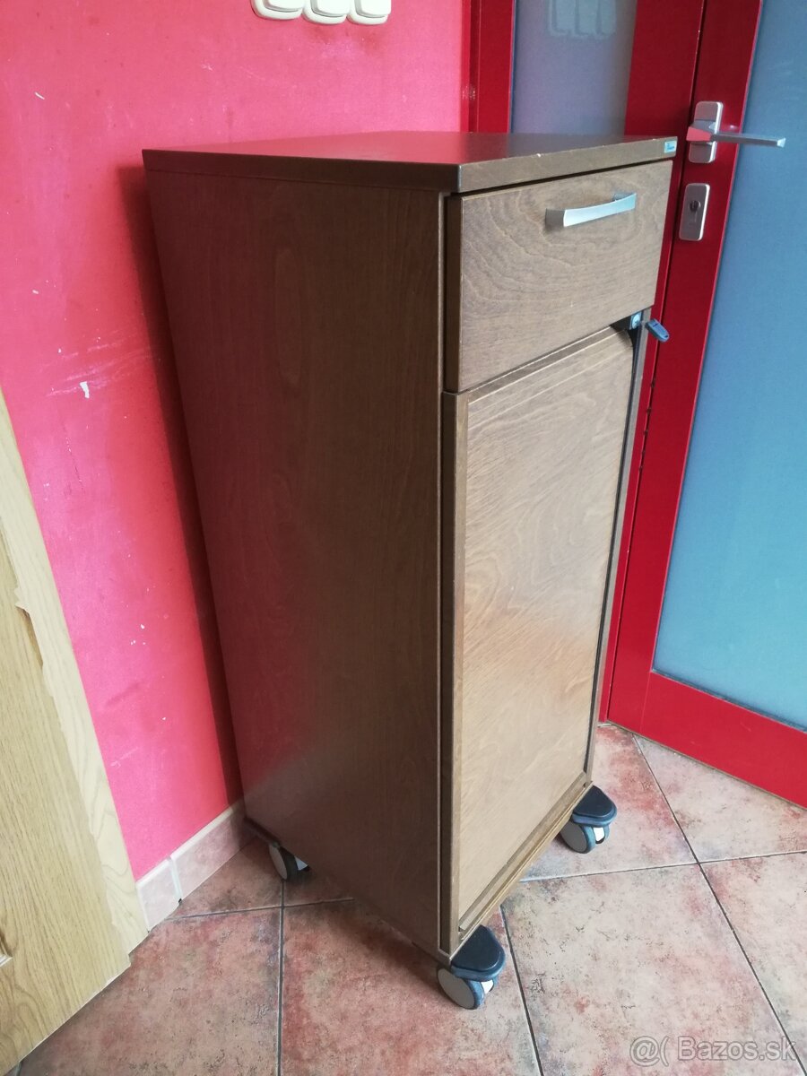 Predám skrinku - americkú registračku so šuflíkom a s dvoma poličkami, s roletovým zatváraním na kľúčik. Zn. Kinnarps. Registračka je na kolieskách s brzdami. Používaná , zachovalá. Rozmery š 40 x h 40 x v 96 cm bez koliesok výška s kolieskami 107 cm. Cena 60 euro. Info 0911373198