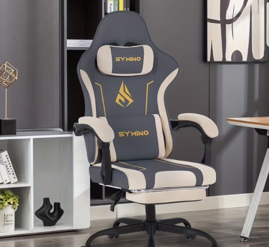 Ergonomická herná stolička s masážnou odvetrávanou výplňou, nastaviteľná výška a 12° nakláňanie (opierka 90°-155°) s podnožkou – odolná kancelárska počítačová stolička z PU kože a kovového rámu – pre náročných. Nosnosť až 130kg. Farba tmavosivá - krémová. Miery v obrázkoch. Jedinečný dizajn, široké sedadlo, veľmi komfortné. Dovezené z Nemecka. Čisto nová, neposkladaná, v krabici. Ceny takýchto sa pohybujú na e-schopoch od €160, naša cena len €110. Osobný odber Prosiek.