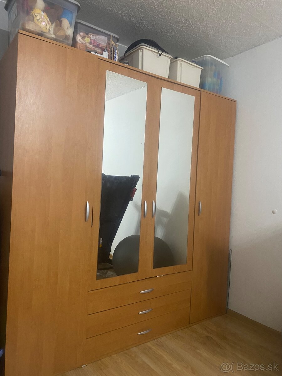 Predavam skrinu. Rozmery vyska : 210 cm, sirka : 200 cm. Je vo vybornom stave. Su v nej veci pretoze som ich este nevypratala. Na lavej strane su 4 policky a 1 vesiak na oblecenie. V strednej casti su 2 zrkadla a 5 policiek. V srrednej casti sa este nachadzaju 3 sufliky. (Vid. Na fotke) Na pravej strane je 1 vesiak na oblecenie a 2 policky. V pripade zaujmu alebo dalsich otazok ma kontaktujte.