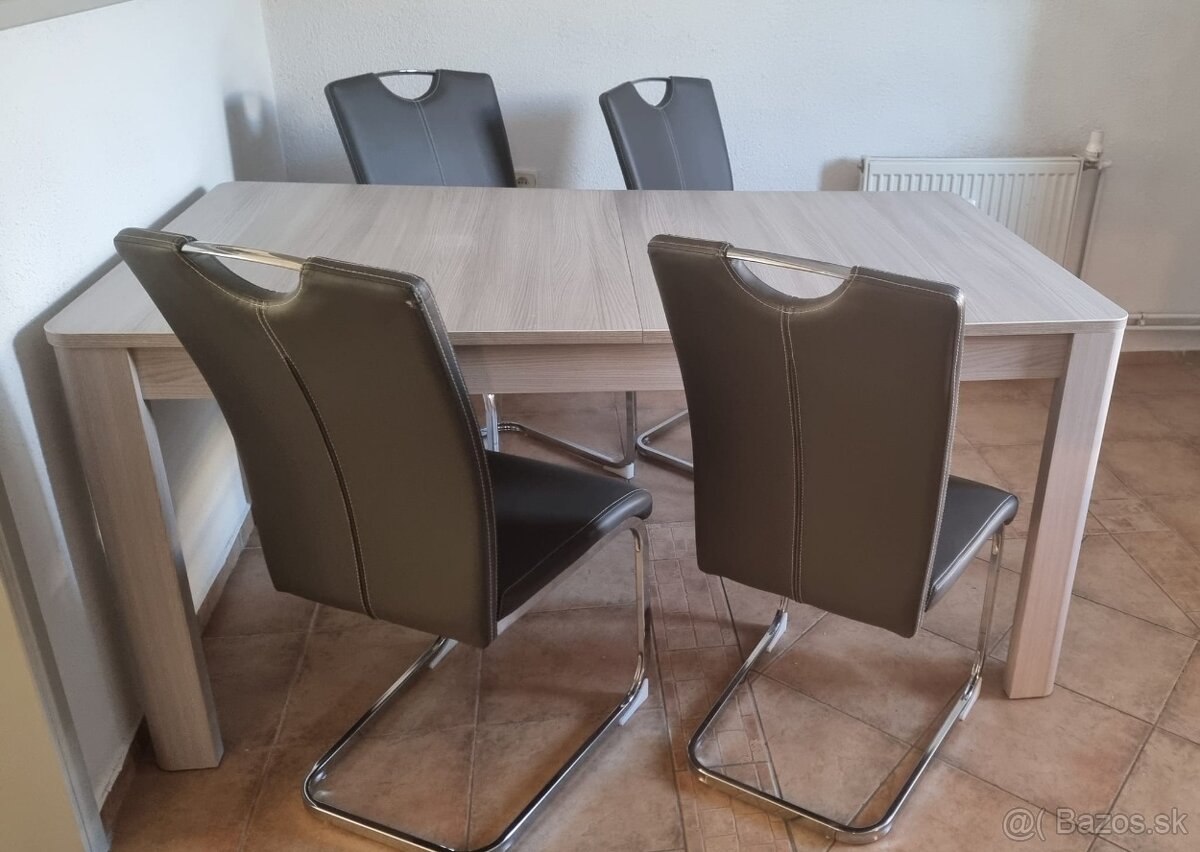 Predám jedálensky stôl rozťahovaci 160x90 po rozložení 200x90 a 4 koženkove stoličky.