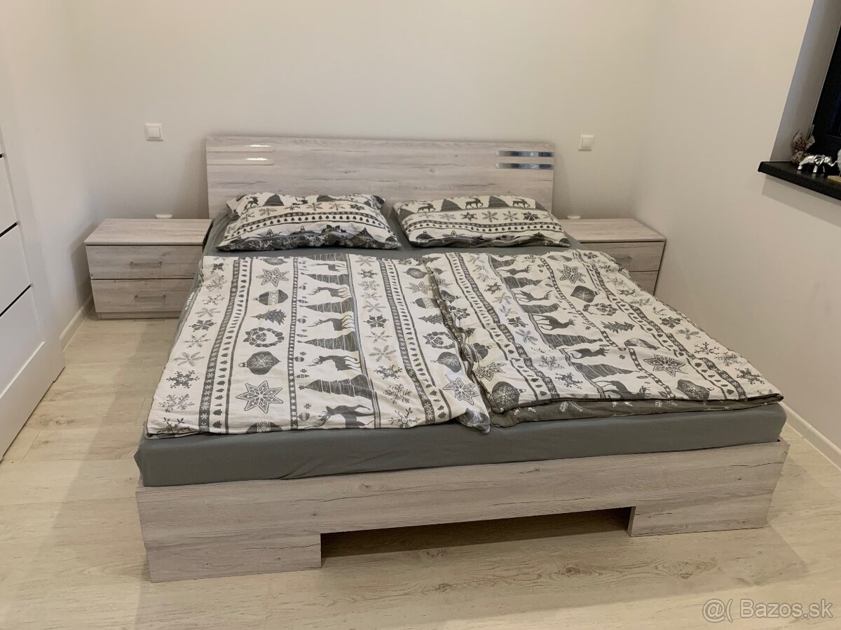 Predám posteľ s nočnými stolíkmi, posteľ má známky použivania,najmä predné nohy(viď foto) ale nebrani pouzivaniu ☺️ je to 180cm