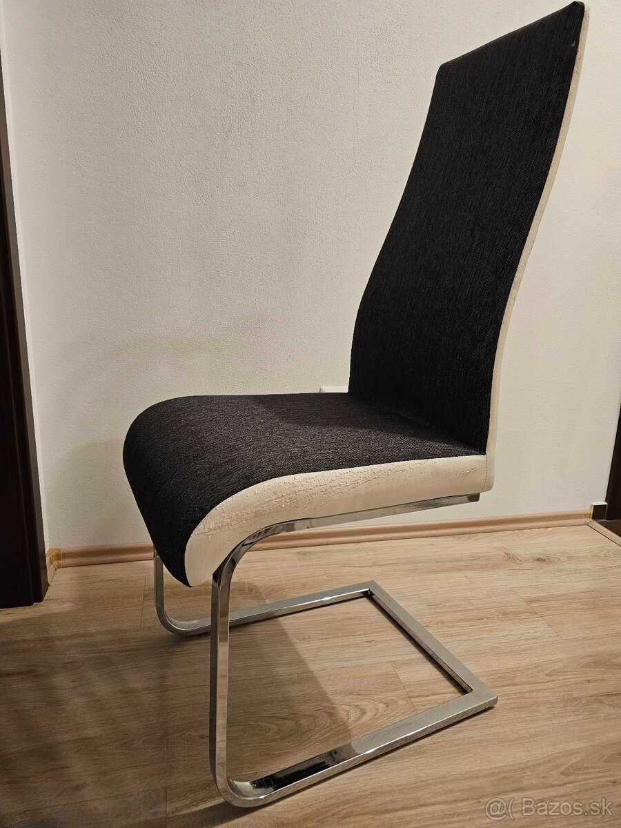 Predám 4 hojdacie jedálenské stoličky. Stoličky majú známky opotrebenia na koženke z boku. Sedacia časť je z tkanej textílie. Stoličky je možné prečalúniť.