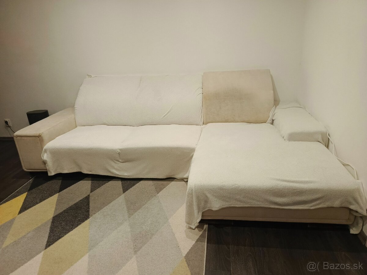 Predám béžovú sedačku / gauč ,nie je rozkladacia, rozmer cca 3,2m x 1,8m, ma polohovateľné opierky a úložný priestor na knihy.