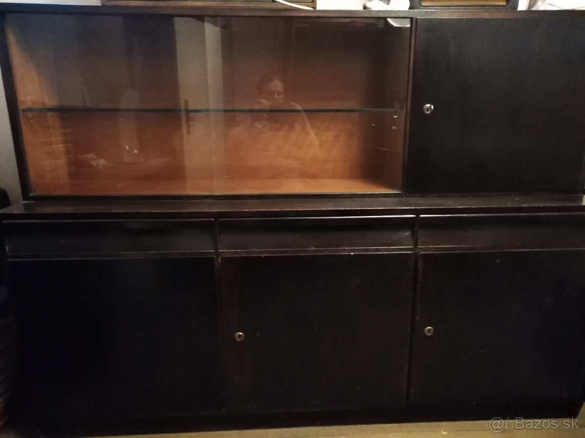 Predám kvalitný čierny laťovkový nábytok z 50-tych rokov, krásne našelakovaný. Dve šatníkové skrine na vešanie, sekretár a veľký rozťahovací gauč. Dvere skíň sú na klavírpántoch, presne sedia. Poskytuje veľa úložného priestoru. Nábytok je treba mierne opraviť a matrace v gauči vymeniť. Potrebný je vlastný odvoz. Nachádza sa v Čachticiach.