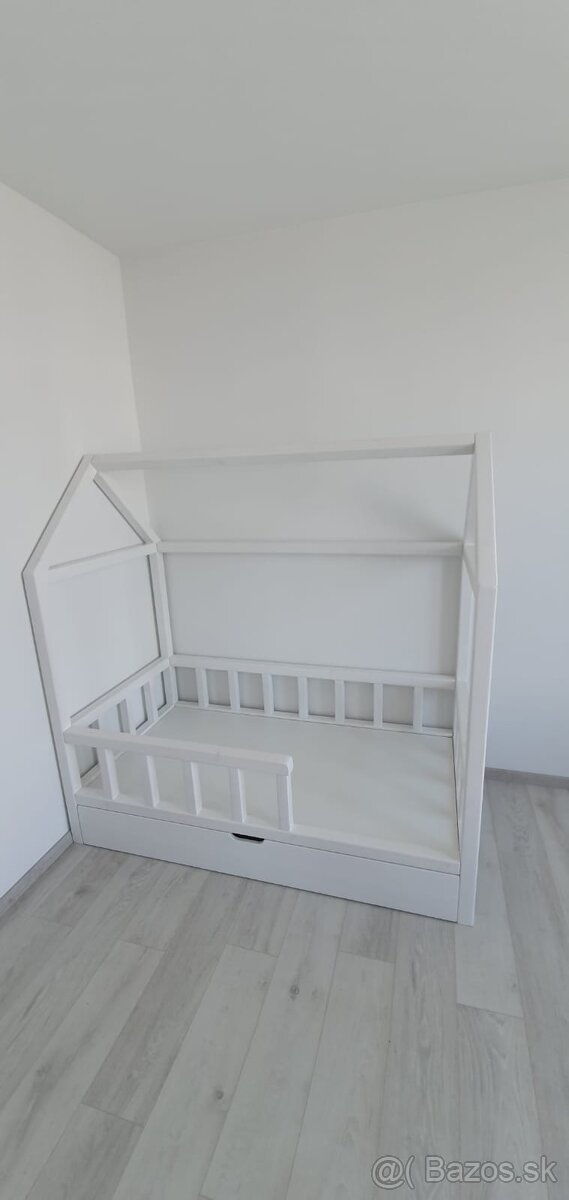 Ponúkam na predaj domčekovú posteľ vyrobenú na mieru. Je vyrobená z kvalitného, prírodného dreva, ktoré je nielen pevné a odolné, ale aj ekologické.