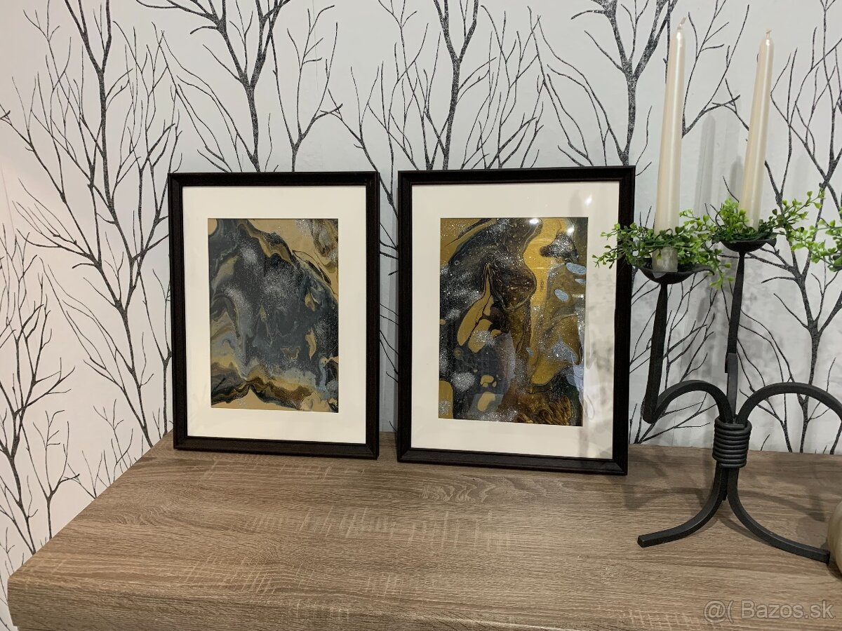 Ručne maľované obrazy liatou technikou sú originálne a skvelým doplnkom do Vášho moderného domu či bytu. Farby : akrylová hnedá, čierna, piesková, strieborná. Má tmavohnedý rám a obraz je za sklom.