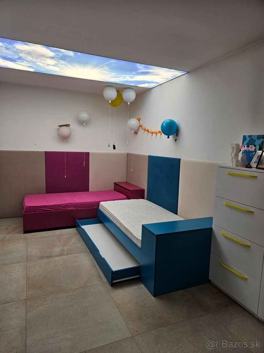 Posúvame ďalej našu krásnu zostavu detskej izby vyrobenej na mieru. Samozrejme sú k tomu všetky 3 matrace ako na foto takisto vyrobene na mieru keďže postele sú o čosi menšie.