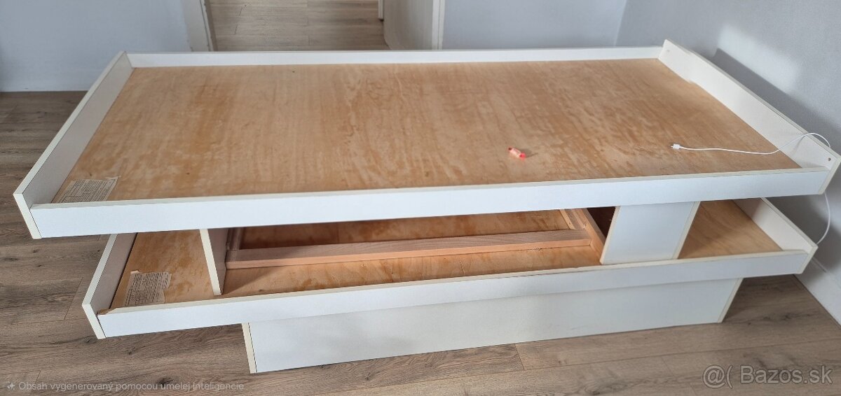 Biela postel - [7.12. 2025]Postel pre matrac 90x200, ma pod sebou suflik ktory je dalsou postelou, suflik je pokazeny ale sikovny si opravy. S odvozom nepomaham. Postel je uz rozobrata, su k nej 2 dva pruzinove matrace v cene.
