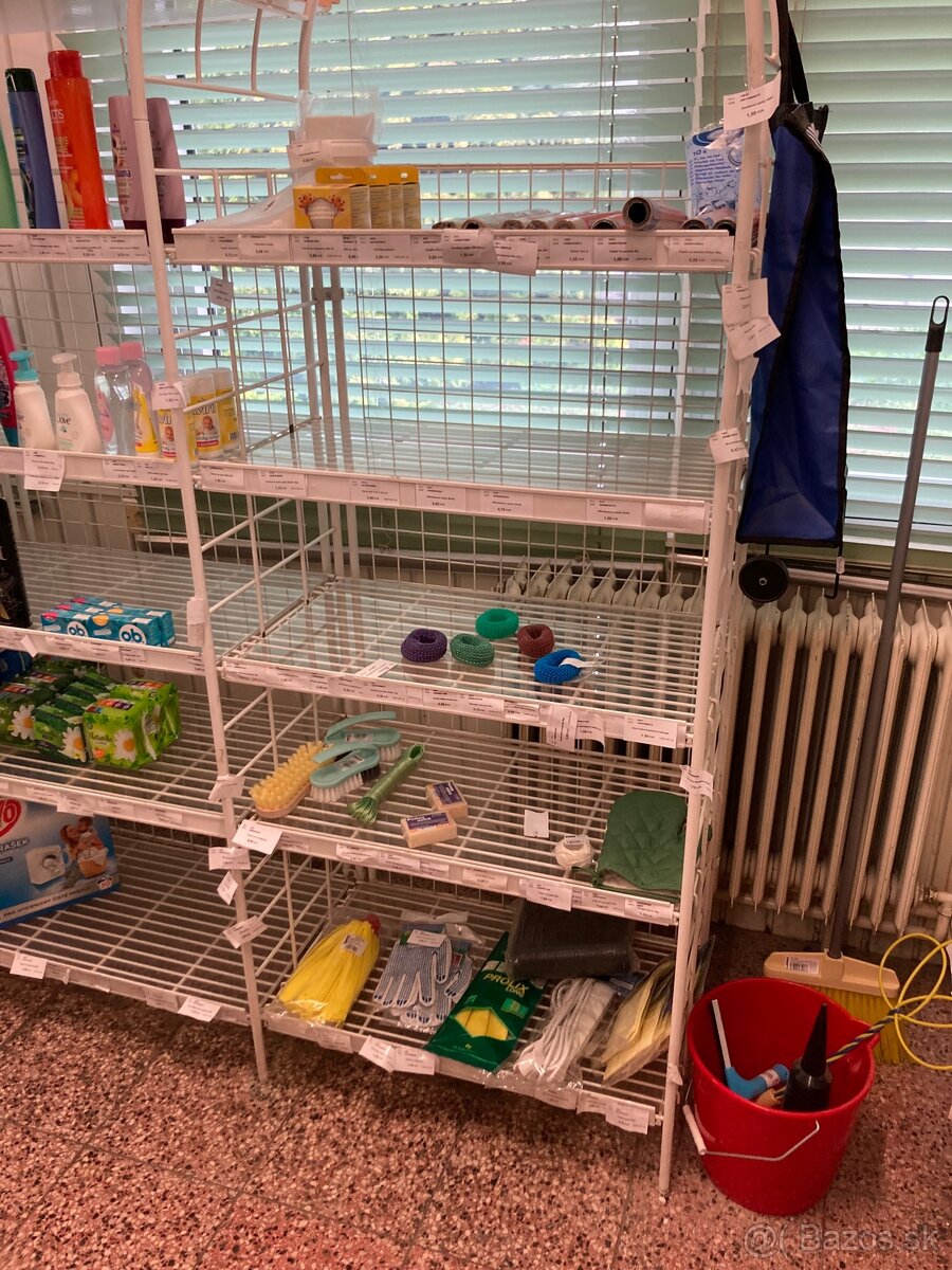 Kovové regále - [23.11. 2025]Ponukám na predaj kovový drôtený regál. Regál je obojstranný. Výška 180 cm a šírka 100 cm. Na každej strane je 7 políc. Na predaj mam 2 regále.
