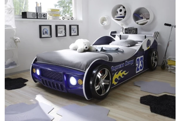 Predám postel v tvare auta 90x200 cm s LED osvetlením vpredu. 1 x modrá, 1 x červená. Bez matracu a roštu. V demonte