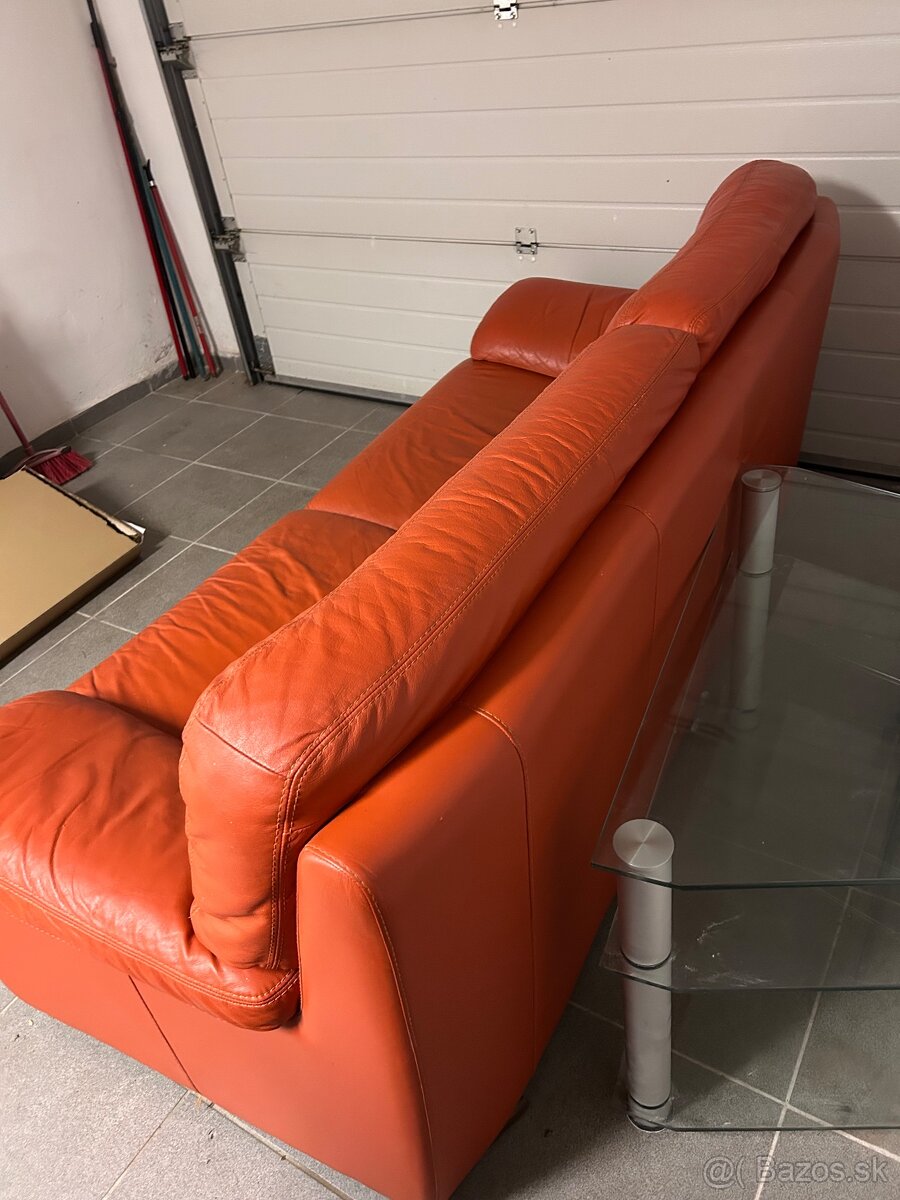 Predám 3-miestny koženný gauč oranžovej farby v dobrom stave.