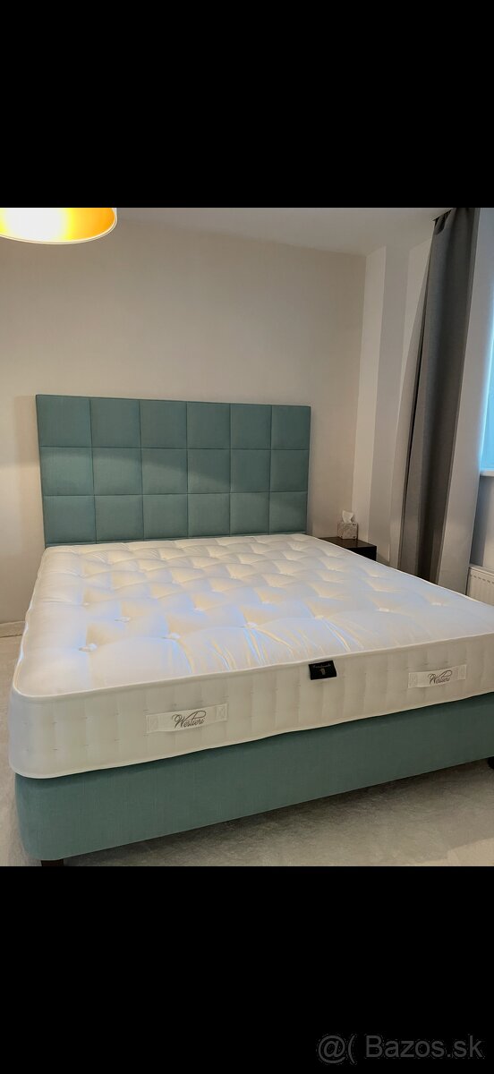 Predám túto krásnu manželskú posteľ od značky Westieri, posteľ je čalúnená vyrobená z veľmi kvalitných materiálov , na posteli je obojstranný luxusný matrac 180x200cm, má totiž letnú aj zimnú stranu. Jednoducho ho obrátite a ste pripravení na akékoľvek teploty. V horúčavách vás schladí kvalitný hodváb, v zime zahreje vlna. Systém 2 400 taštičkových pružín.