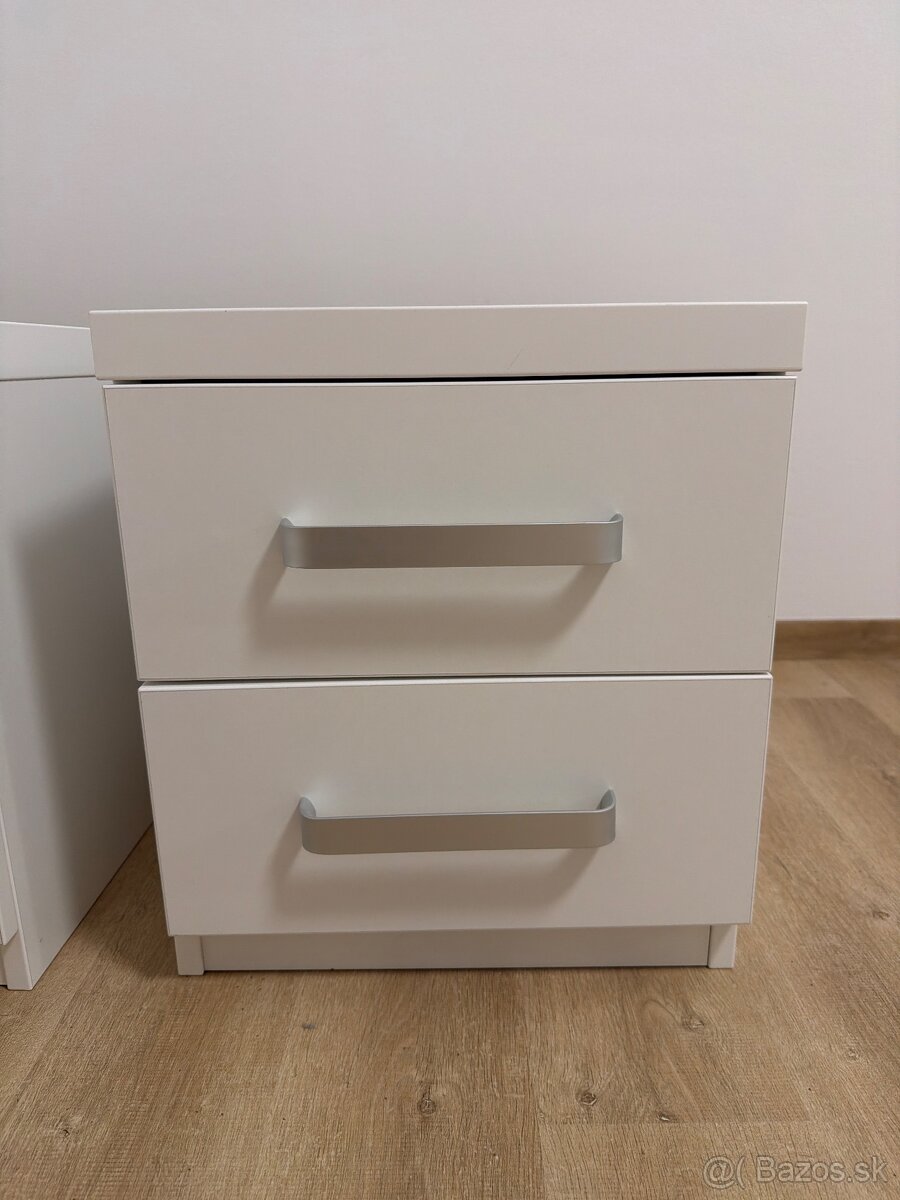 Predám 2 ks nočných stolíkov od slovenského výrobcu WoodService. Rozmery sú hĺbka 44cm, výška 45 cm a šírka 40cm. Zásuvky majú mäkké a tiché dovieranie. Pôvodná cena jedného stolíka je 178€. Lokalita: Čierna Voda. Cena je uvedená za oba kusy.