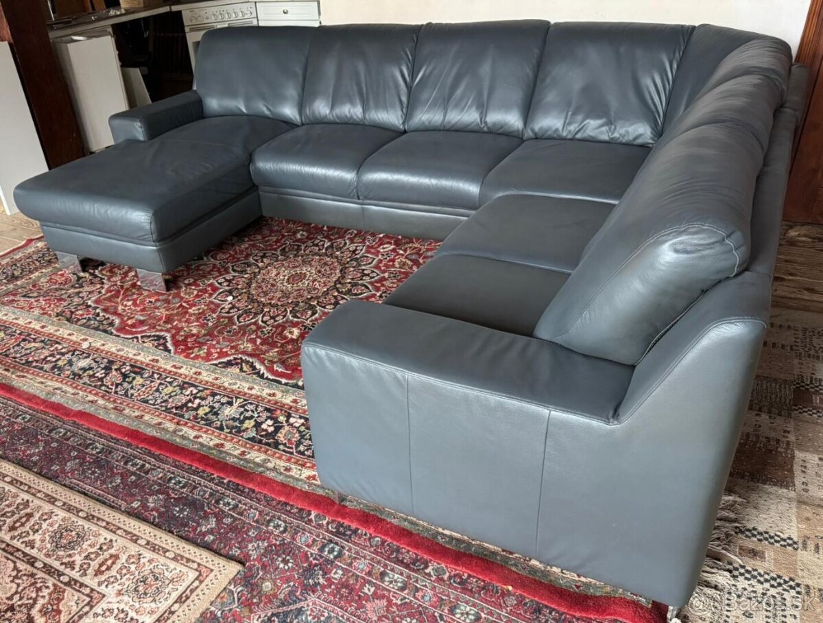 Moderní kožená sedací souprava ve tvaru "U", 3437 - [30.12. 2025]Moderní kožená sedací souprava ve tvaru "U".