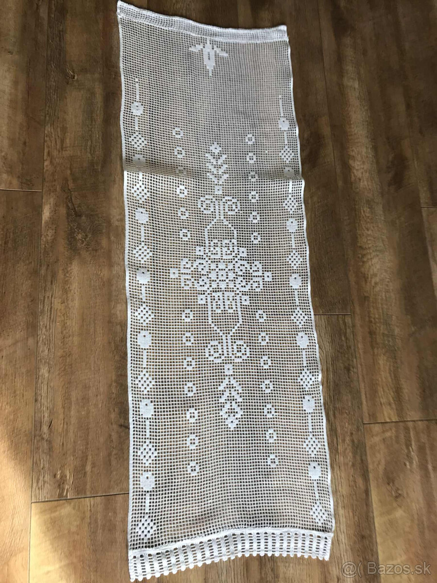 1.Predám peknu hačkovanú zaclonku o rozmeroch - 46x135cm, bavlna, na hornom okraji 3cm tunel na garnižku.cena- 6 euro