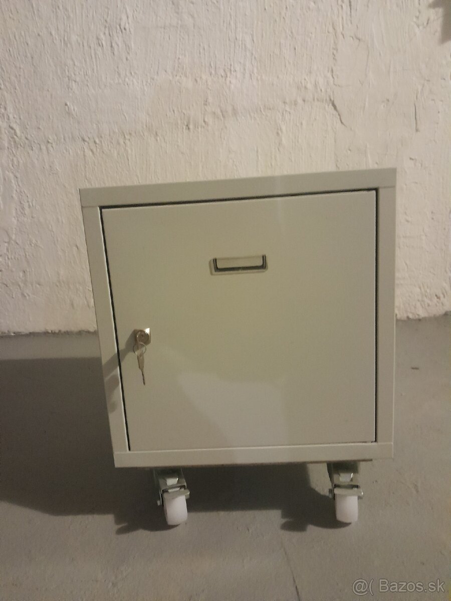 Skrinka - [29.12. 2025]Predám skrinku - americkú registračku so šuflíkom a s dvoma poličkami, s roletovým zatváraním na kľúčik. Zn. Kinnarps. Registračka je na kolieskách s brzdami. Používaná , zachovalá. Rozmery š 40 x h 40 x v 96 cm bez koliesok výška s kolieskami 107 cm. Cena 60 euro. Info 0911373198