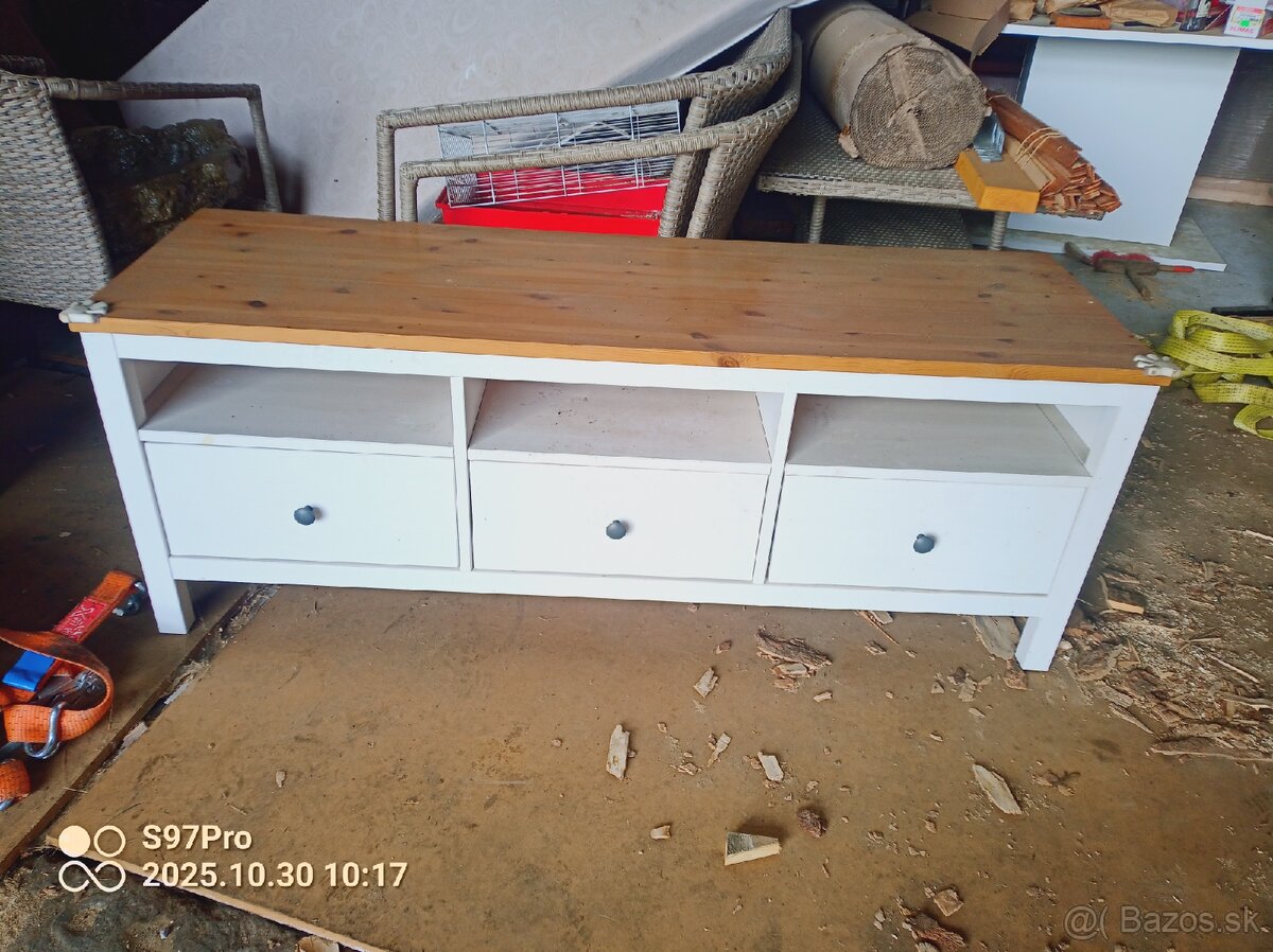 Nábytková zostava - [24.12. 2025]Predám nábytkovú zostavu vo veľmi dobrom stave - konferenčný stolík (125x62x45) - polička v konferenčnom stolíku (45x41), stôl pod TV (96x45x35,5) a komoda (92x40x85) - hĺbka zásuvky-33cm. Udávané rozmery - šírka, hĺbka, výška.
