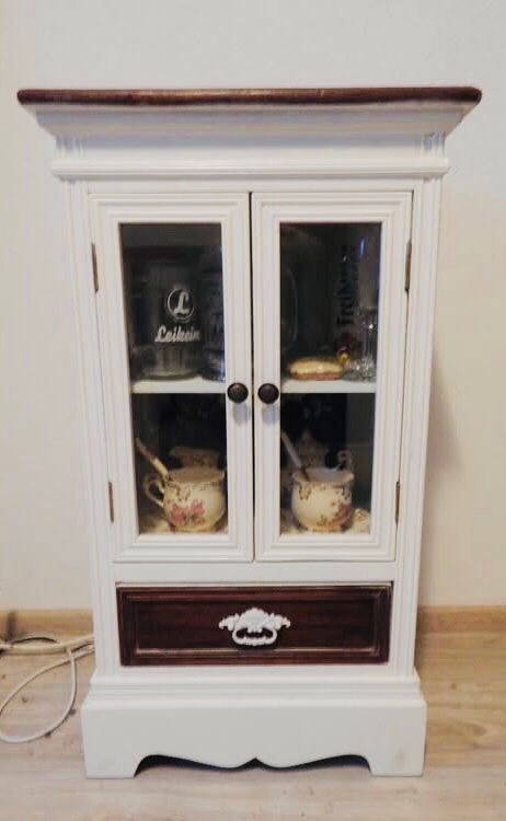 Horná časť je presklená vitrína s dvoma policami, spodná časť obsahuje výsuvnú zásuvku, ktorú je možné jednoducho vybrať a vyčistiť. Univerzálny dizajn je vhodný do kuchyne, kancelárie, kúpeľne alebo akejkoľvek inej miestnosti v domácnosti.