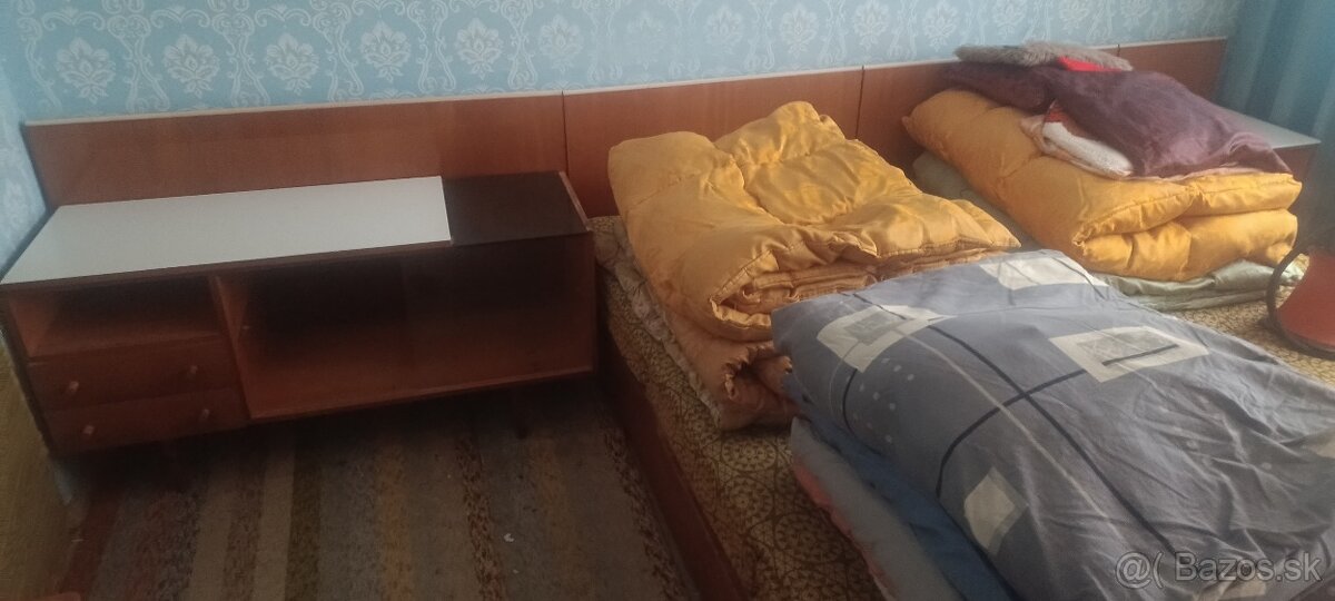 Prodám manželskou postel, skleněný stůl, 4 židle, velké skříně, malý stolek, poličku, polici na květiny, pár věcí na oblečení a 5 peřin.