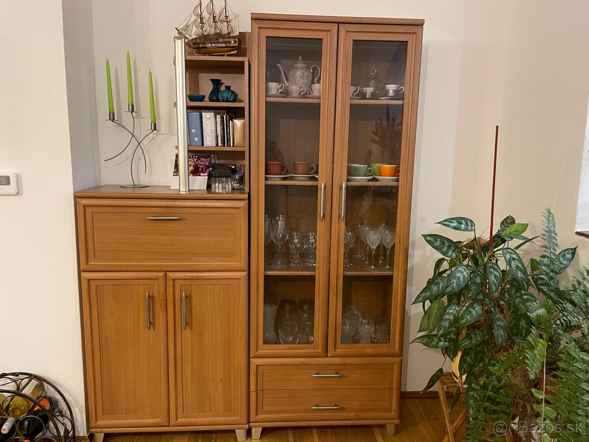Skrinka (vedľa skrinky so sklom fotka): v. 110cm+6cm nožičky, š. 72cm, hl. 36cm- 50€