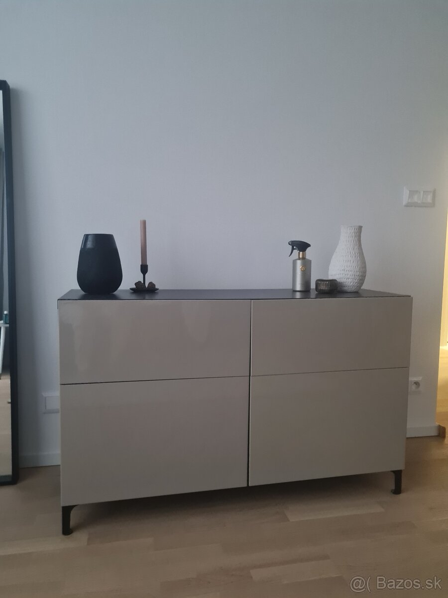 Predam komodu s ciernym korpusom a lesklymi bezovymi dvierkami na ciernych kovovych nozickach. Len osobny odber v BA.