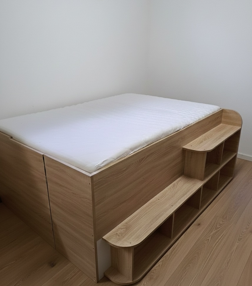 Ide o multifunkčnú posteľ rozmer 140x200cm, výška 85cm, ktorá je navrhnutá tak, aby maximálne využila priestor v izbe.
