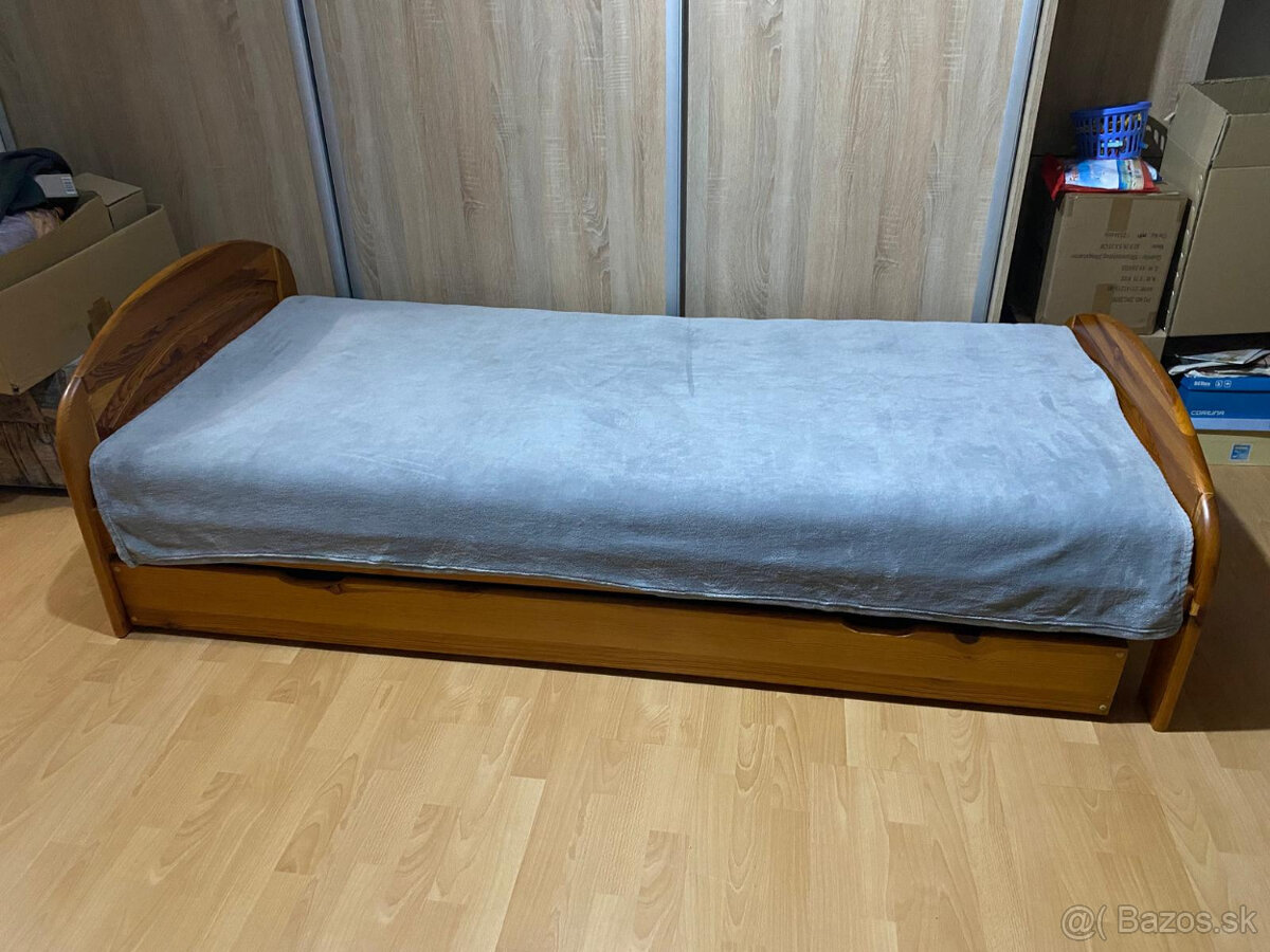 Predám 1-lôžkovú postel z masívu a úložným priestorom + matrac./šírka 90cm/